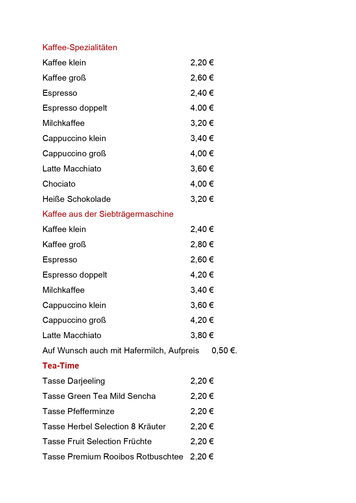 Einmal monatlich bieten wir am Sonntagvormittag einen Brunch (mit Reservierung) und nachmittags Kaffee und Kuchen an.