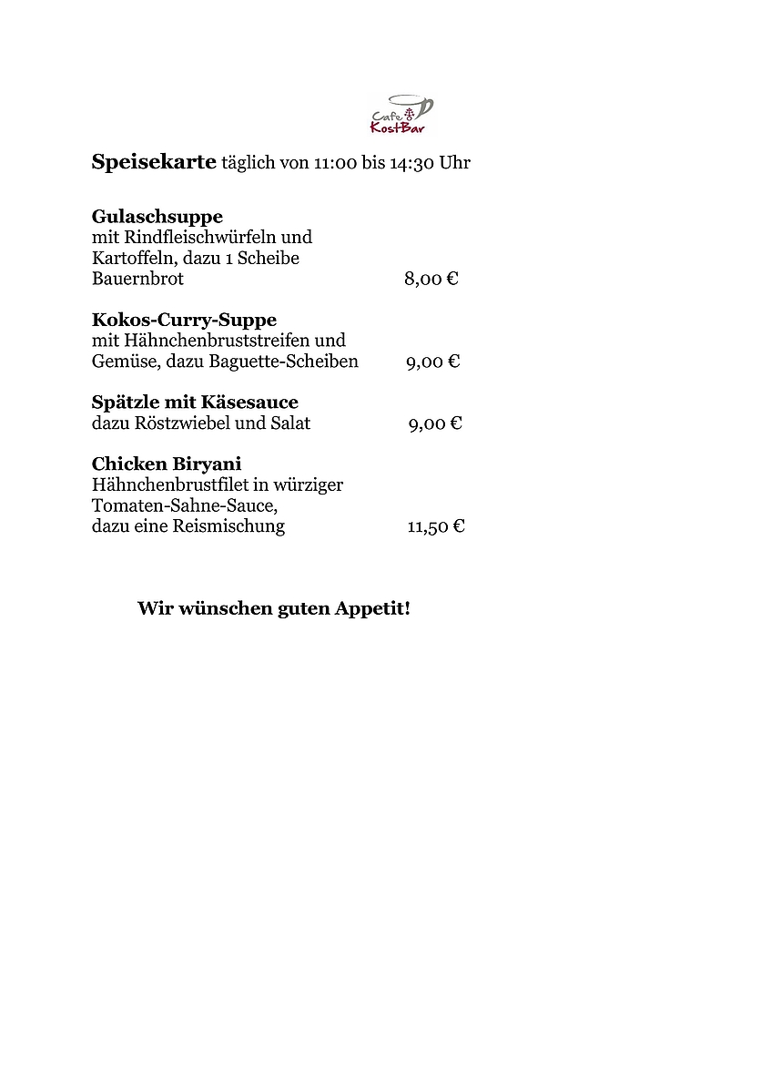 Diese Gerichte erhalten Sie jeden Tag zwischen 11 und 14.30 Uhr