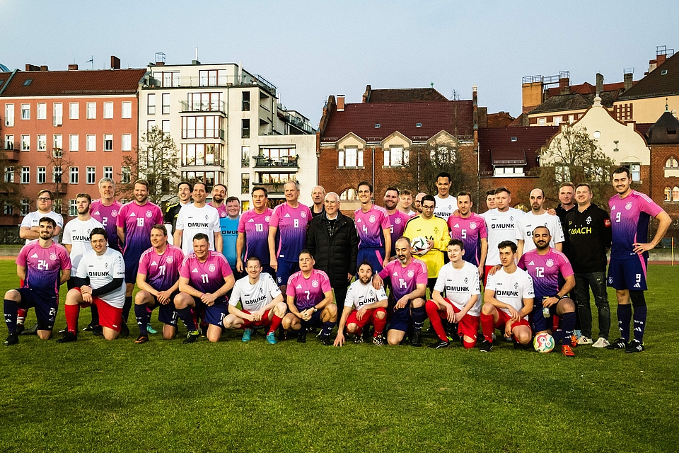 Nach einem 2:5-Rückstand zur Halbzeit startete das DRW in der zweiten Hälfte eine Aufholjagd. Trainer Manuel Mair, der sich zwischenzeitlich selbst eingewechselt hatte, verkürzte auf den Endstand von 4:6. Trotz der Niederlage überwog beim Team Dominikus-Ringeisen-Werk die Freude über die besondere Partie: „Wir haben ein intensives, aber jederzeit faires Spiel erlebt. Niemand wurde verletzt, das war eine coole Veranstaltung“, sagte Manuel Mair. Für den passenden Ausklang der Partie sorgte ein zünftiger Abend in der Bayerischen Vertretung.