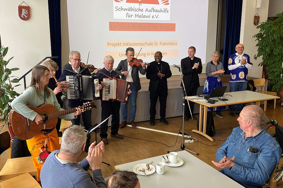 Weihbischof Mwakhwawa würdigte in seinen Grußworten die Unterstützung aus Schwaben: „Das Projekt der Malawihilfe leistet einen wichtigen Beitrag dazu, dass Kinder mit Behinderung ein Zuhause finden und gemeinsam mit Gleichaltrigen ohne Beeinträchtigung lernen können.“ Er dankte allen Unterstützerinnen und Unterstützern, die sich für das ausschließlich spendenfinanzierte Hilfsprojekt engagieren: „Ich werde für euch alle beten und bitte auch um eure Gebete für die noch junge Kirche in Malawi. Vielen Dank für die Unterstützung, die ihr uns durch die Malawihilfe habt zuteilwerden lassen.“ Im Anschluss wurde gemeinsam das Lied „Großer Gott, wir loben Dich“ gesungen.