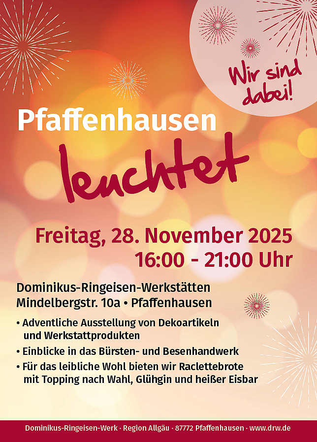 Am Freitag, den 28. November 2025, erstrahlt Pfaffenhausen wieder in festlichem Glanz – und die Dominikus-Ringeisen-Werkstätten Pfaffenhausen sind mit dabei!