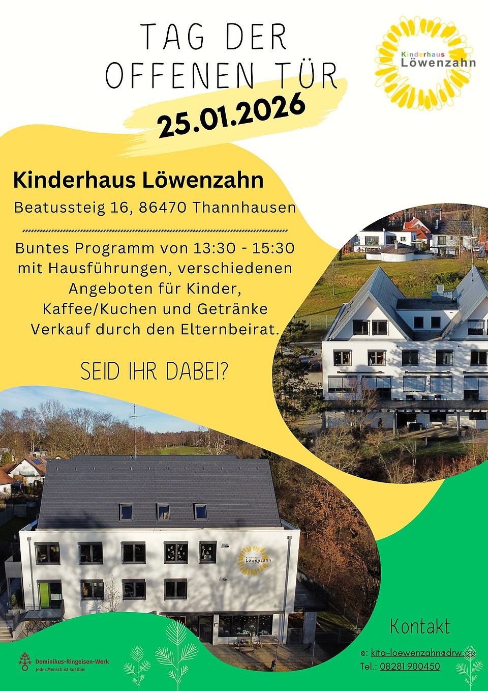 Am Sonntag, 25. Januar 2026, öffnet das Kinderhaus Löwenzahn in Thannhausen seine Türen. Zwischen 13:30 und 15:30 Uhr haben Interessierte die Möglichkeit, die Einrichtung kennenzulernen, bei Hausführungen spannende Einblicke zu erhalten und ein abwechslungsreiches Angebot für Kinder zu entdecken.